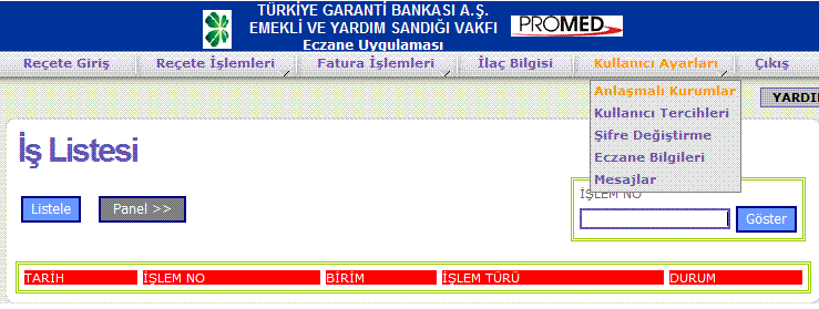 Kullanıcı ayarları bölümünde Anlaşmalı kurumlarınızın listesini oluşturabilir, reçete döküm boyut ayarını ayarlayabilir, sisteme giriş şifrenizi değiştirebilir, eczane bilgilerinizi güncelleyebilir ve mesaj gönderebilirsiniz.(Resim 8.1)