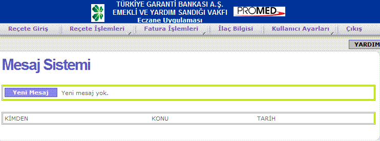 Yeni Mesaj: Sistem yöneticisine mesaj atmak için YENİ MESAJ ı bir kez tıklayınız. Açılan